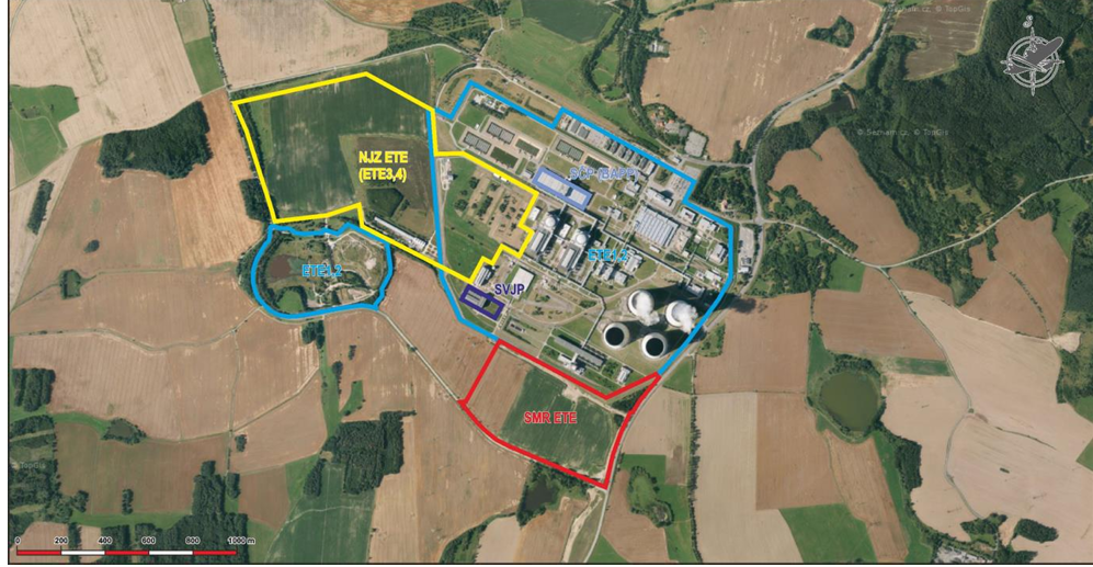 Areal der laufenden 2 VVER-1000 mit Zwischenlager SVJP, Areal für 2 geplante große Reaktoren, Areal für SMR
