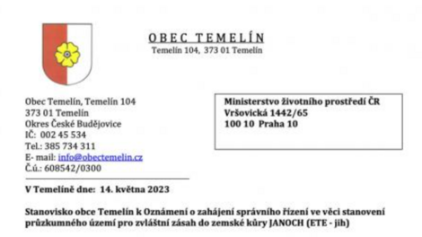 Das Bild zeigt ein entsprechendes Schreiben der Gemeinde Temelín.